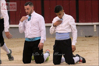 ESGOTADA! Assim estava a Palha Blanco na final do circuito de recortadores no passado sabado 7 de Outubro 1 hora antes já não havia bilhetes. Ambiente espectacular para ver os 16 melhores recortadores da actualidade arriscarem a vida com toiros em pontas. Toiros de Manuel Dias, bem apresentados , a rondarem os 500kgs e a darem bom jogo com destaque para o último toiro da noite. Numa final arrepiante ,onde os quatro finalistas arriscaram ao máximo, venceu e bem Pedro Carolino, com quiebros ajustados ao milímetro com destaque para os que fez a receber o toiro a porta-gaiola . Impossível estar melhor . Os outros finalistas foram extraordinários também , com quiebros espectaculares de Alexandre Carolino, os saltos de Fernando Silva e os recortes ajustados de Tiago Pais . Uma palavra para os veteranos que participaram que mostraram porque são enormes neste mundo, Kaly Cardoso com o seu mortal de costas , Ivan Ballester com o quiebro vasco-landes e Chipu metendo se em pé em cima do toiro enlouquecendo o público. No final ouvia se os maiores elogios aos recortadores, em especial a Pedro Carolino " koni " , que afirmavam que era um menino de outra galáxia e todos prometeram voltar, e a Arte Lusa também.