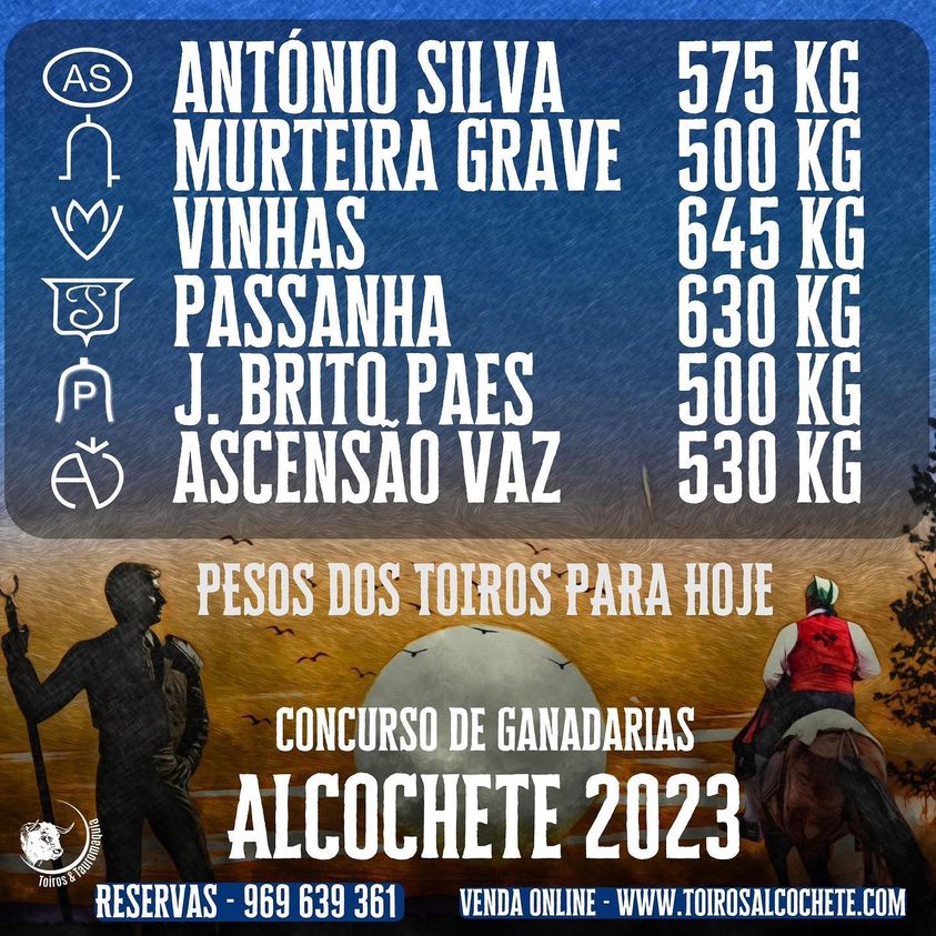 Peso dos 6 toiros para o concurso de ganadarias de hoje Alcochete.