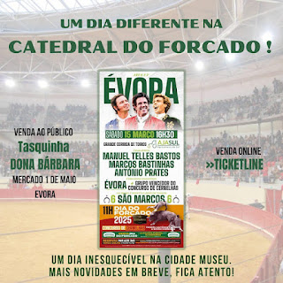 dia 15 de Março que a Arena D'Évora viverá um dia dedicado à Tauromaquia com uma manhã de exaltação ao forcado e à tarde com corrida de toiros.